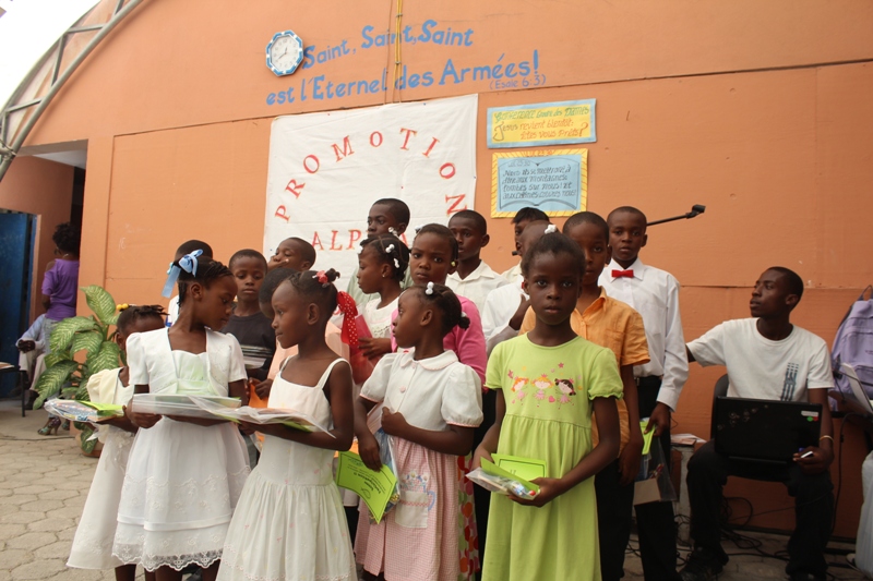 In Haitian schooling, children have government exams to graduate from Grade 6 and Grade 12. The Grade 6 class of Adoration Christian School has been working hard in each of their subjects all year long. They studied History, Geography, Mathematics, Bible, Language Arts as well as some others. They are finally at the long awaited graduation, and then they can go on to the next level pending the results of their government exams. Graduation ceremonies in Haiti are a big event to celebrate…