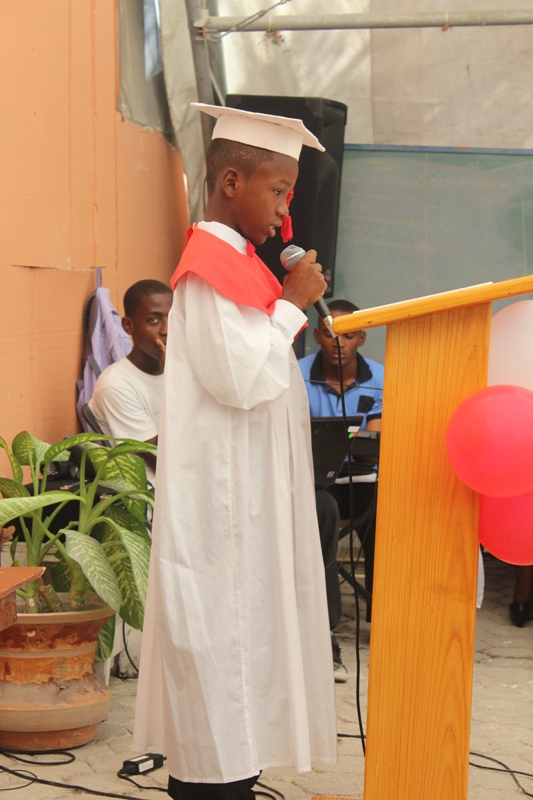 In Haitian schooling, children have government exams to graduate from Grade 6 and Grade 12. The Grade 6 class of Adoration Christian School has been working hard in each of their subjects all year long. They studied History, Geography, Mathematics, Bible, Language Arts as well as some others. They are finally at the long awaited graduation, and then they can go on to the next level pending the results of their government exams. Graduation ceremonies in Haiti are a big event to celebrate…