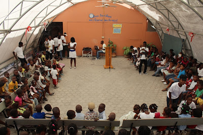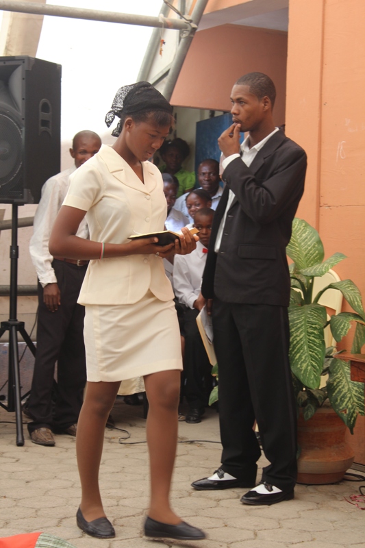 Recently at the Grade 6 graduation I had the privilege to watch some of the students perform a skit for the audience. It was really awesome to see the thought that went into this skit. The skit began with the one of the girls coming in draped in the Haitian flag. She collapses on the road, moaning and crying for help.