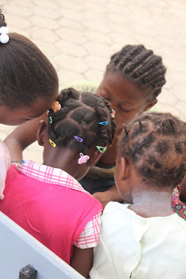 Giggles, loud laughter, singing, recitation, clapping, chatting, munching, and many other sounds were heard today as I observed and also sat in my office today. The noise was so loud at times that in some of the meetings we had upstairs we could barely hear each other talking. Today was the first day of VBS at the church at Adoration Christian Centre. There were some older ladies that had taken the time to organize a VBS week. They had many young people come and volunteer for the week. At 8:45 the children started to arrive at Adoration. By 9:30 we had over 100 children. By snack time there were at least 150 children there. If things progress like they did last year then by Friday we should have five times as many children there. Last year we started with 20 and ended with 100. Here are some pictures of today’s festivities.