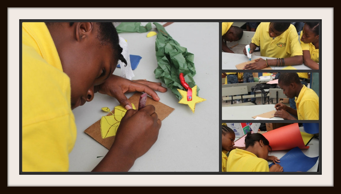 Here are some pictures of the highschool students working on their Art projects. It is fun hearing all the noise and the laughter going through the school. It is awesome to see the students working together to create some Christmas Art.