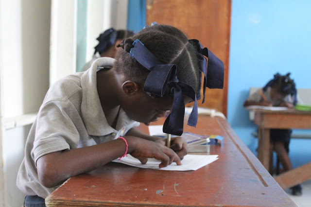 Ginette Toussaint currently teaches Kindergarten I at Adoration Christian Centre. There are three different levels of Kindergarten in Haiti. The students start school at a very young age of 3 years old. Ginette is in charge of the youngest of the children. She has 17 students in her class.
